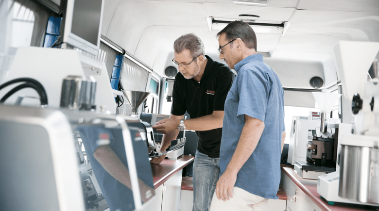 Use the opportunity to discuss your special applications with our experts. Test our instruments for milling, sieving, dividing and particle sizing conveniently in our fully equipped laboratory bus directly at your location – of course free-of-charge and non-binding.