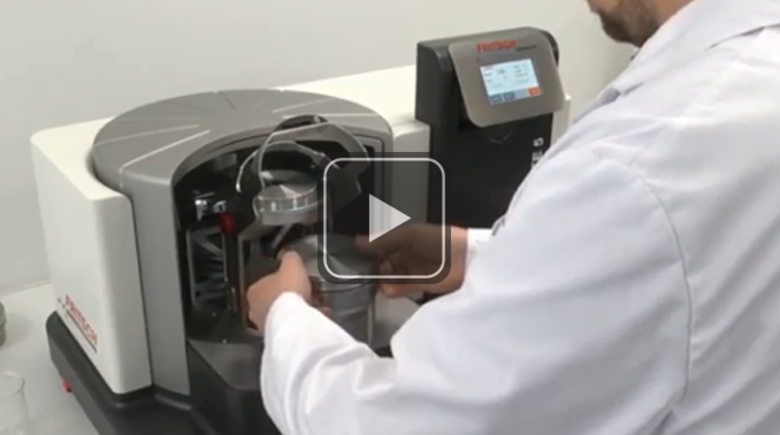 Comminution of aluminium oxide sample using a grinding bowl made of zirconium oxide and 25 x 20 mm grinding balls.