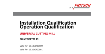 IQ/OQ documentation (questionnaire format - implementation not included) for the independent utilization for the support of instrument qualification in the quality management system for the Universal Cutting Mill PULVERISETTE 19 large.