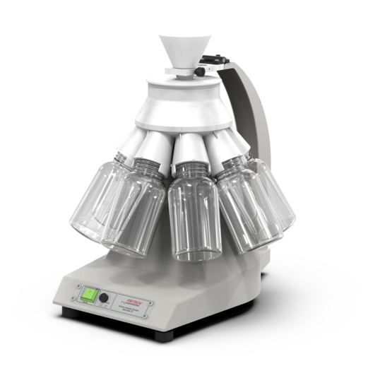 The LABORETTE 24 is the perfect accessory for the combination with the FRITSCH Rotary Cone Sample Divider LABORETTE 27 and the FRITSCH Rotor Mill P-14 or Variable Speed Rotor Mill PULVERISETTE 14 classic line with automatic control of the channel vibration via the integrated interface – for perfect results and reliable reproducibility.