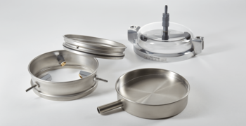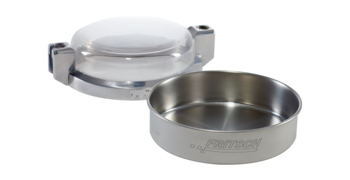 For observation of the sieving process, sieve clamping lids made of plexiglas are available for FRITSCH test sieves of 100 mm or 200 mm/8“ diameter. You also receive a clamping lid made of polyamide (without window) to sieve materials for which metallic contamination must be avoided. Also available are corresponding sieve pans and sieves made of plastic. Sieve pans and interposed sieve pans for multiple sieving operations in a single process are available in stainless steel for all sieve sizes.